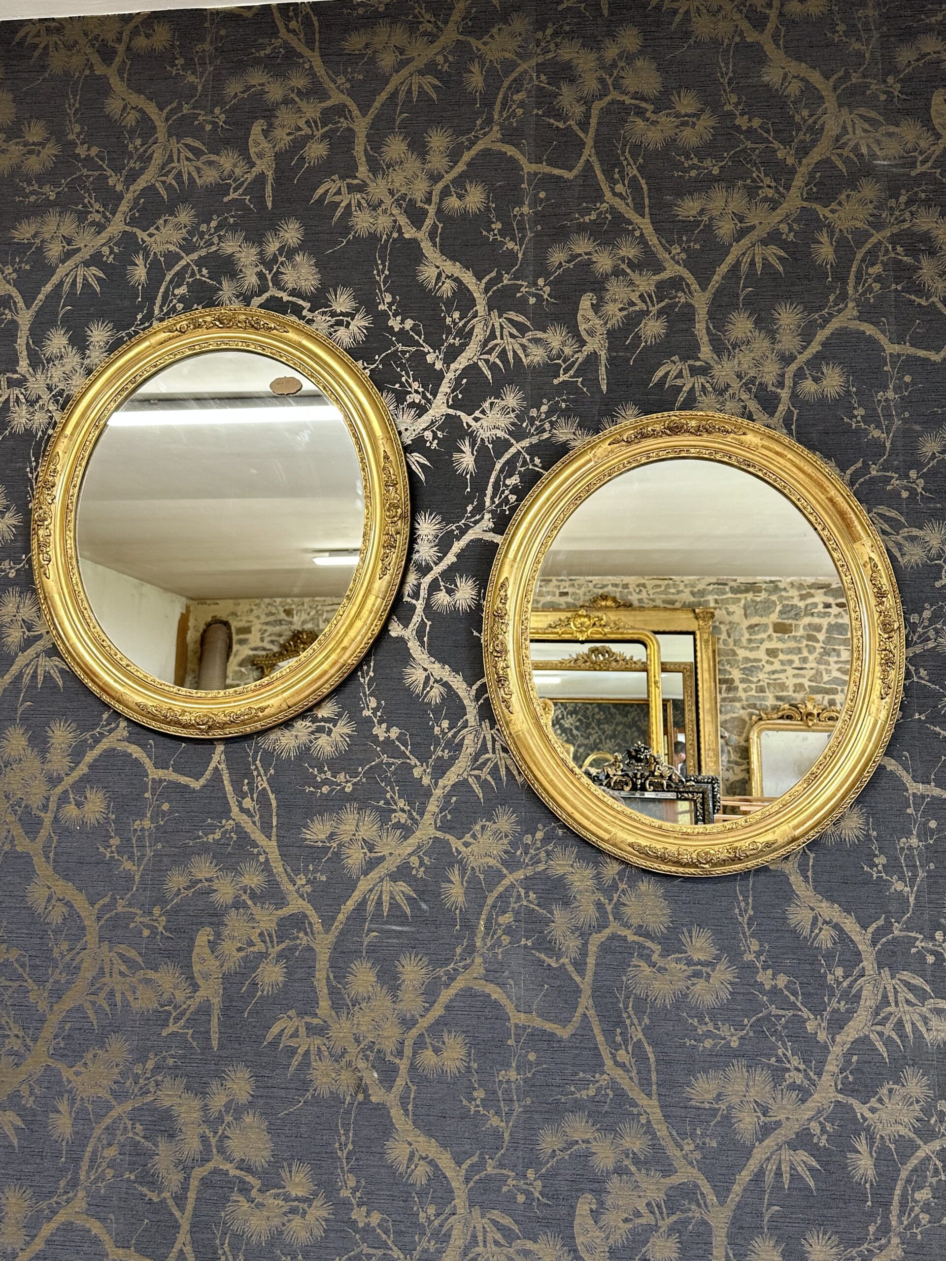 Paire de miroirs oval XIX